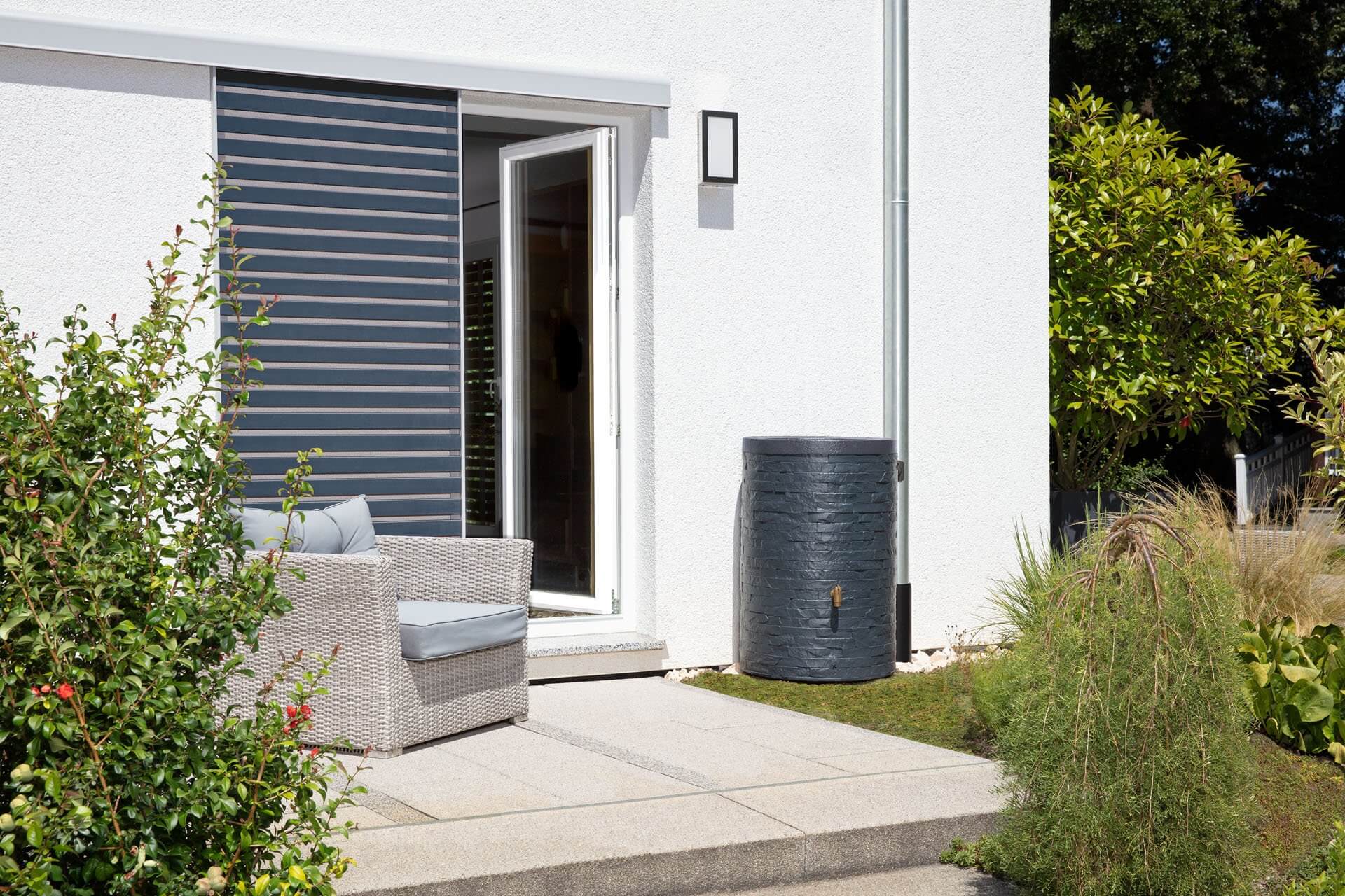 Ein Regenwasserbehälter ist Witterungseinflüssen und Sonneneinstrahlung ausgesetzt. Auf diese Bedingungen abgestimmte Materialien sorgen für eine lang anhaltend gute Optik.