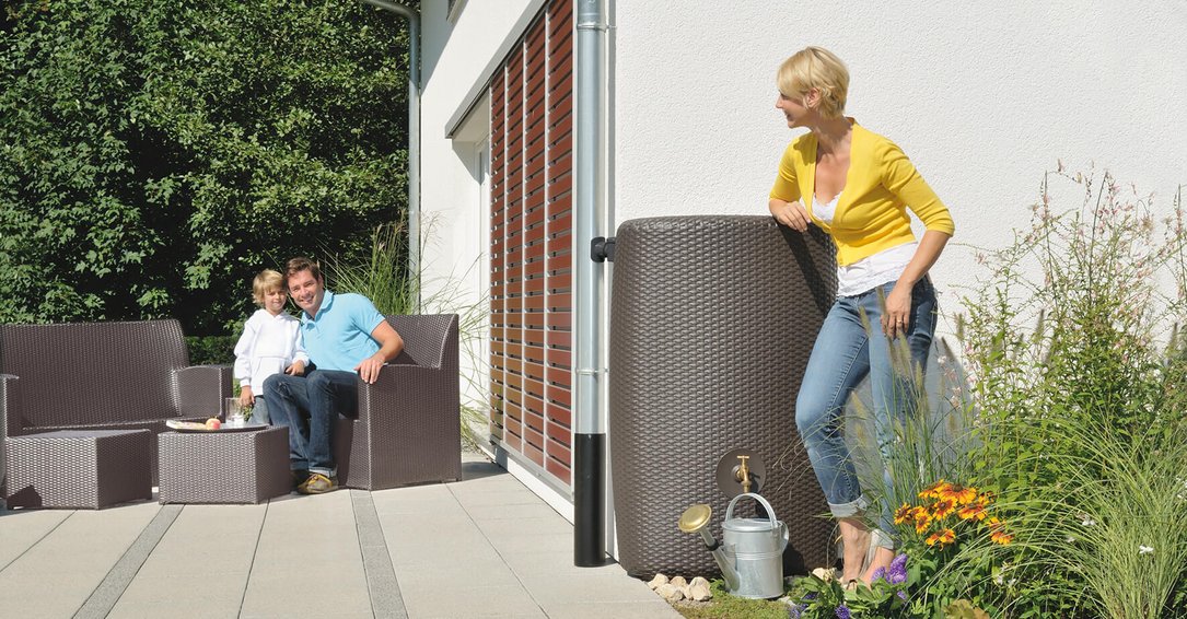 Ein Regenwasserbehälter ist Witterungseinflüssen und Sonneneinstrahlung ausgesetzt. Auf diese Bedingungen abgestimmte Materialien sorgen für eine lang anhaltend gute Optik.