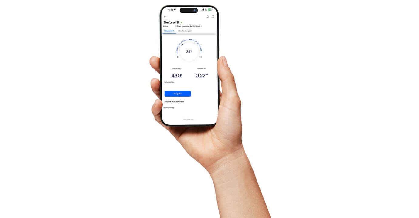 Die BlueLevel R GARANTIA Füllstandsanzeige ermöglicht Ihnen eine einfache und zuverlässige Überwachung Ihres Regenwassertanks. Präzise hydrostatische Messtechnik, intuitive Bedienung und flexible Vernetzung sorgen dafür, dass Sie den aktuellen Wasserstand jederzeit im Blick behalten – ob direkt am Gerät oder digital. Dank Plug-and-Play-Installation ohne Kalibrierung und vielseitiger Einsatzmöglichkeiten lässt sich das System schnell integrieren und komfortabel nutzen.
