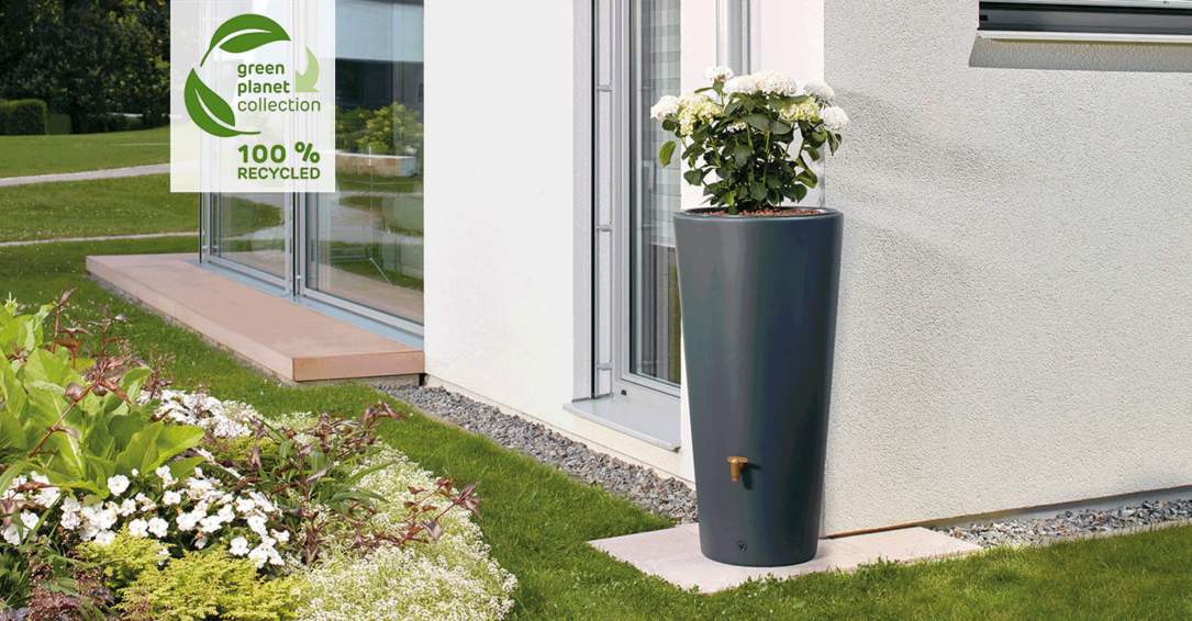 El macetero integrado, de cómoda extracción y con altura de 20 cm, permite un diseño individual para todos los depósitos de agua de lluvia 2en1.