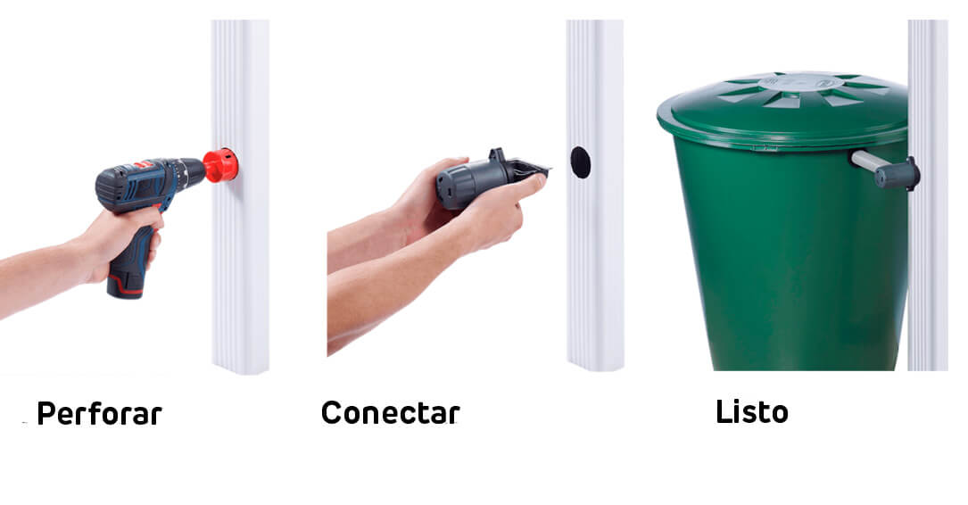 - Montaje sencillo y rápido: 1.Perforar 2.Conectar 3.Listo (v. imagen)