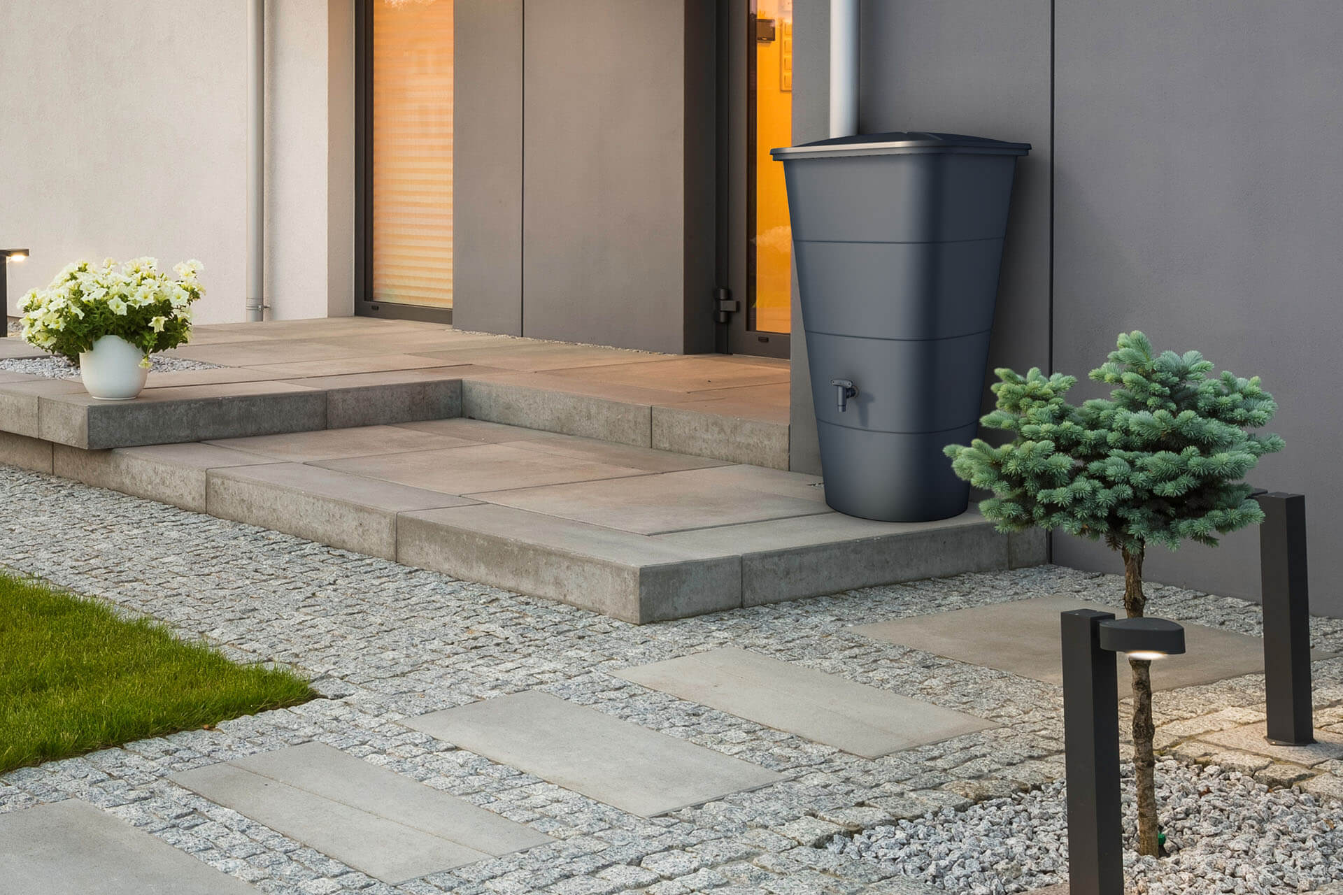 - Depósito de lluvia cuadrado con diseño moderno