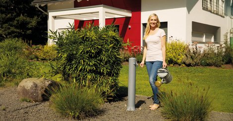 Una fuente práctica para utilizar en el jardín para la extracción del agua de lluvia.